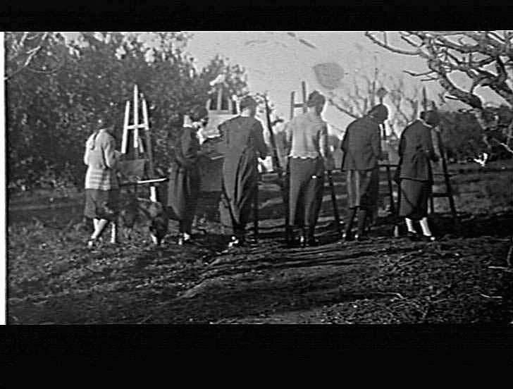 Artists, Easels, Education & Training, Orchards, Painters, Paintings, Portraits, Protective Clothing & Safety Wear, Students