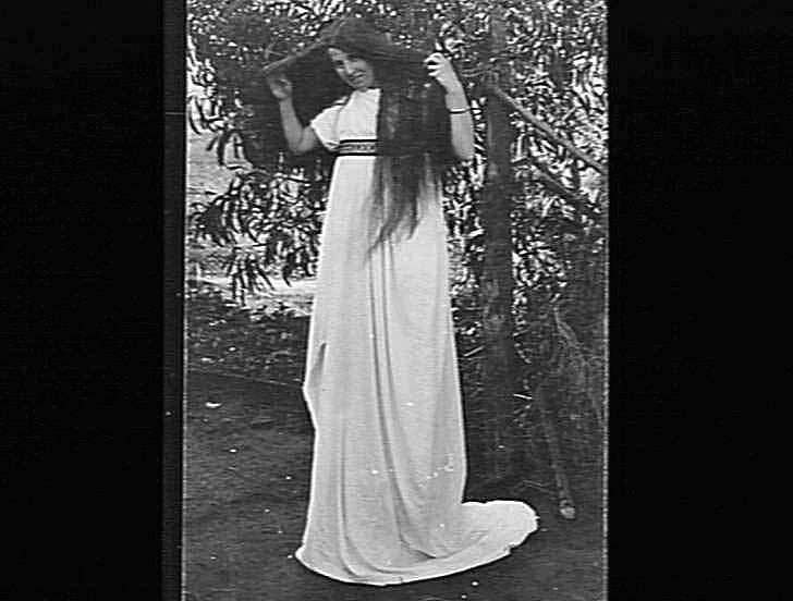 Portrait of young woman in a long dress. (Note: this person is named as Kitty Chandler in 97.).