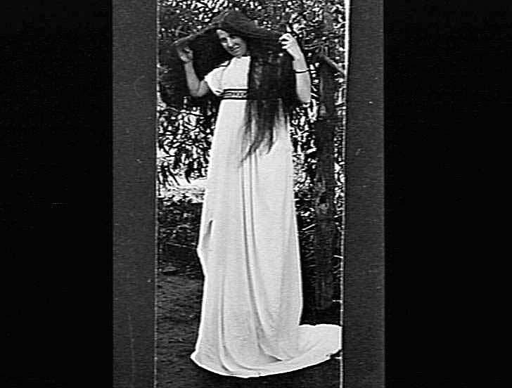 Portrait of young woman in a long dress. (Note: this person is named as Olive Pitts in 82 & 191).