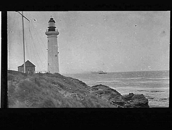 'Lighthouse'. Landscape view of lighthouse. Unknown location.