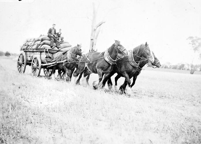 Agricultural Workers, Cereal Crops, Drays & Wagons, Farms, Horsedrawn Vehicles, Horses, Sacks
