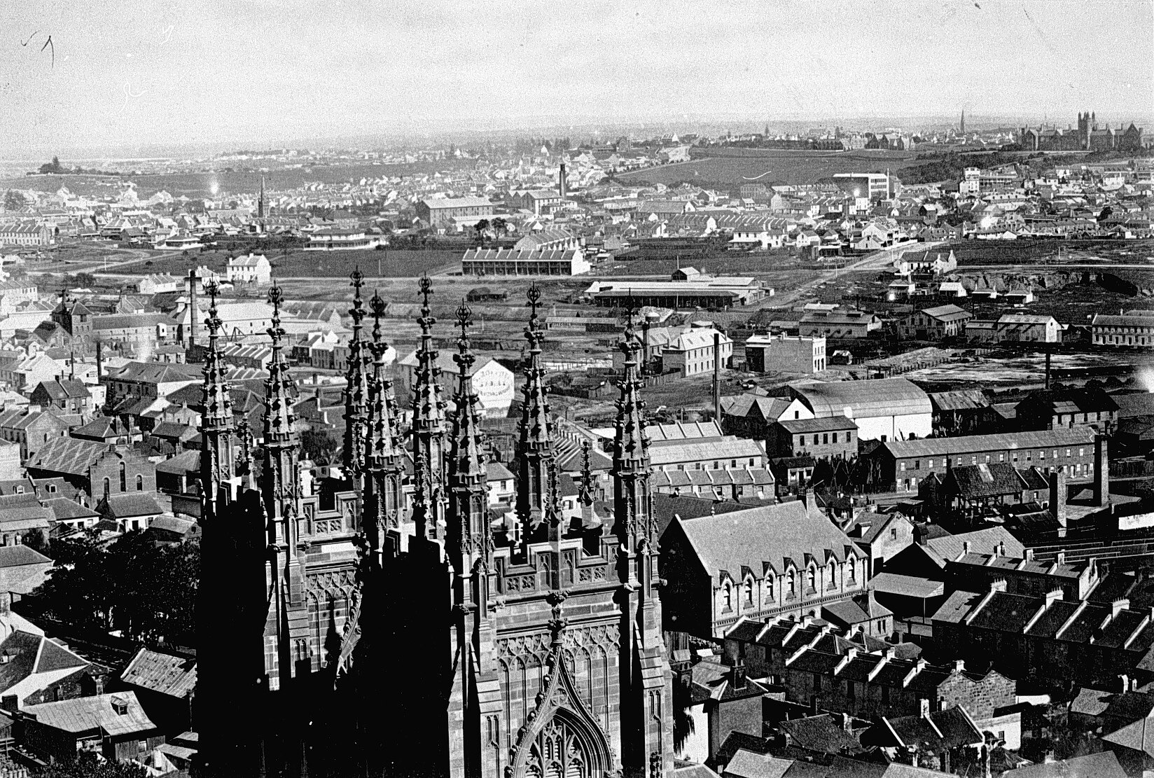 Looking from the Sydney Town Hall tower over Newtown. Sydney University is visible.