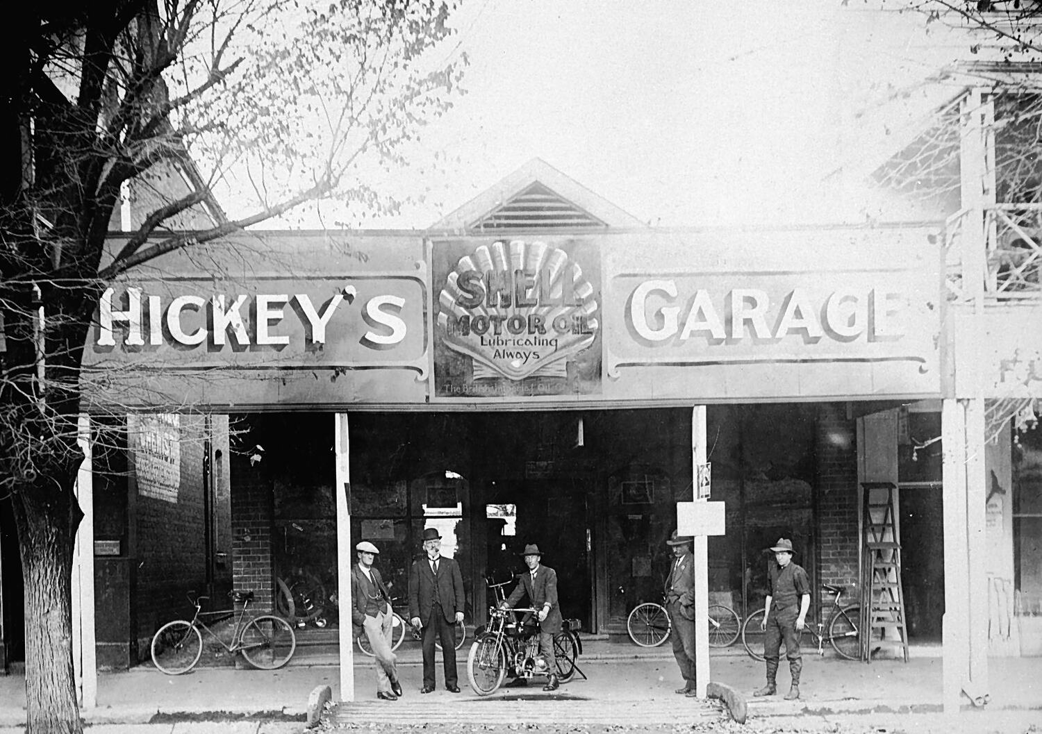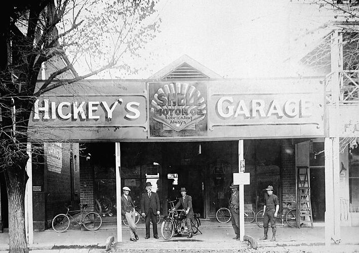 Advertising, Bicycles, Ladders, Mechanics, Motor Cycles, Motor Garages, Verandahs