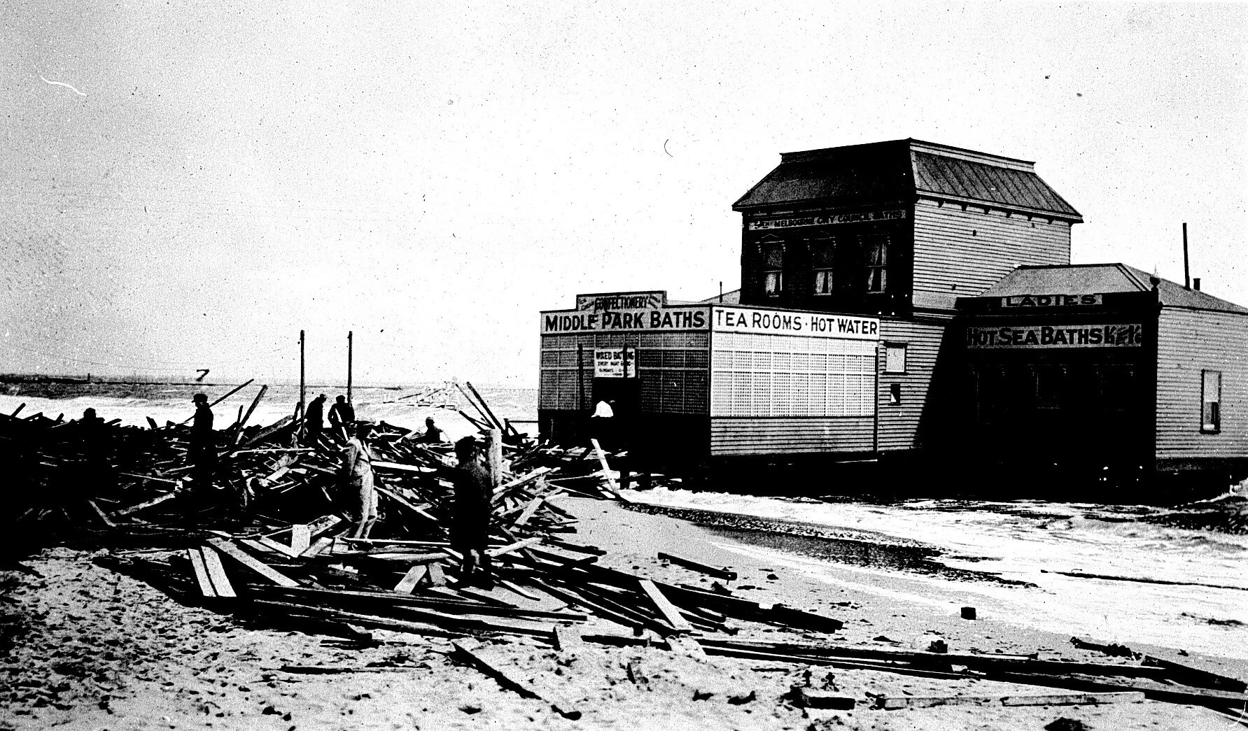 Wreckage at the Middle Park baths and tea rooms after a storm.