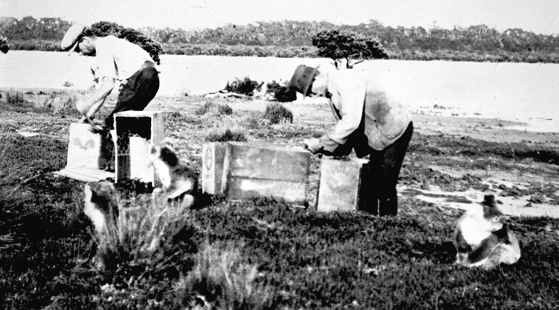 Koalas being placed in boxes to be transported from French Island to Quail Island.