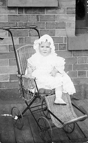 A small child in a pram.