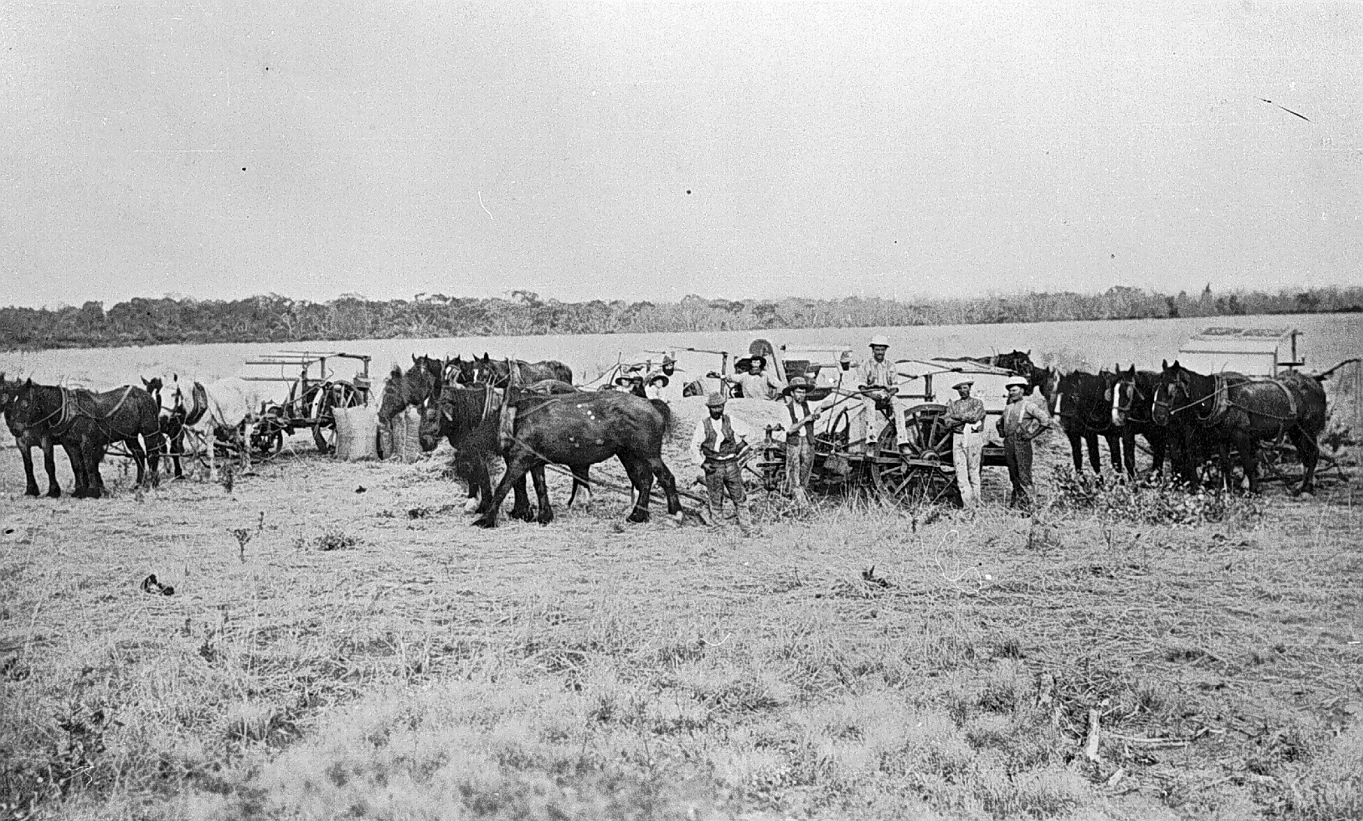 Agricultural Equipment, Agricultural Workers, Cereal Crops, Farms, Horses, Sacks, Strippers