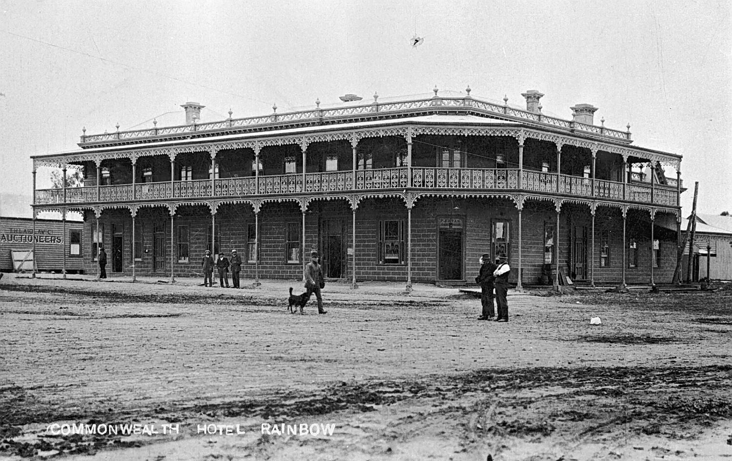 The Commonwealth Hotel. There is iron lacework around the verandah and the balconies.