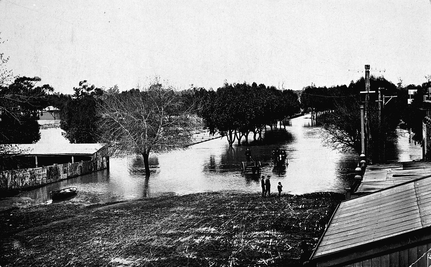 Boats, Floods, Horsedrawn Vehicles, Natural Disasters, Telegraph Infrastructure, Telegraph Poles