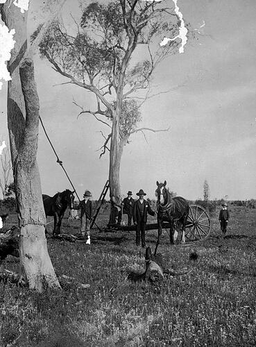 Land clearing. The trees have been ringbarked and horses are, apparently, being used to pull them over.