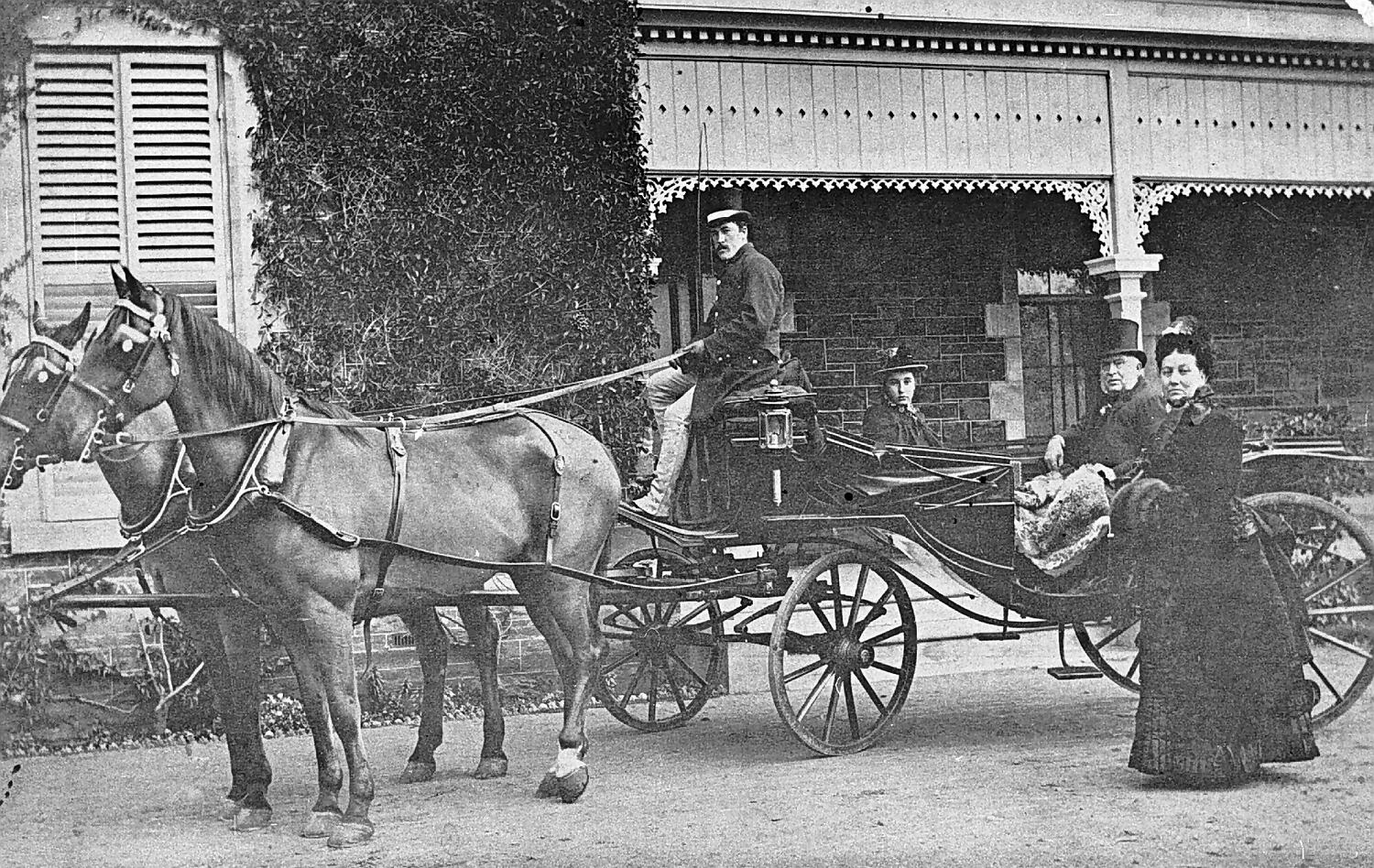 The Dougall family and their carriage in the driveway of their home.