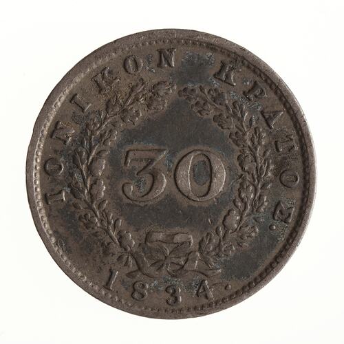 30 Lepta, Issued by Ionian Islands, Greece, 1834