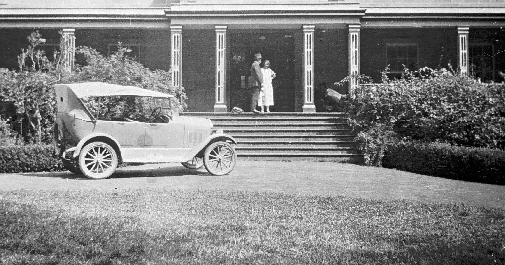 A Ford motor car drawn up in front of the 'Maritimo' guesthouse.