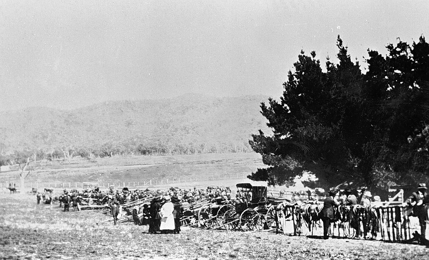 A sulky and other horse-drawn vehicles at 'Happy Valley' homestead clearing sale.