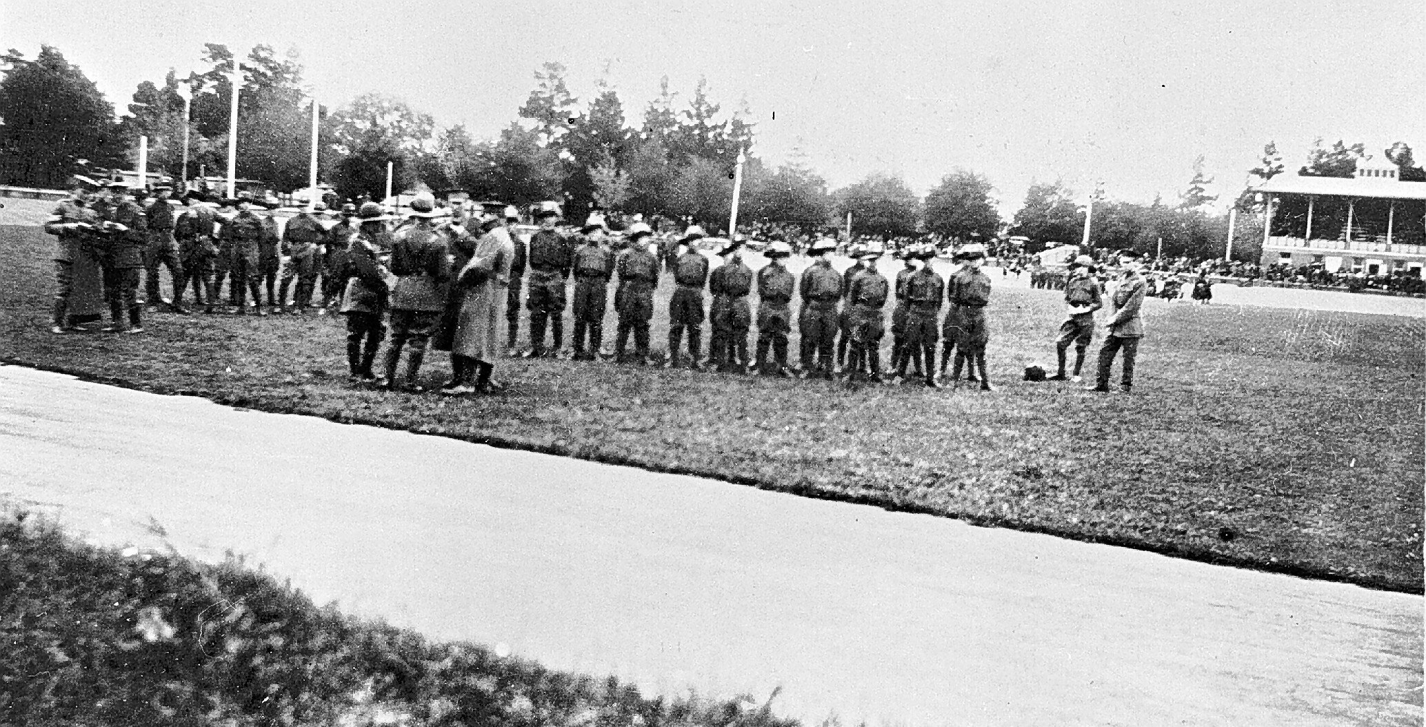 Cadets gathered on an oval in Ballarat in 1915.