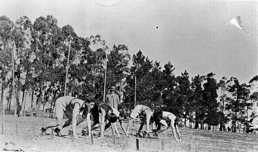 Runners getting set for the start of a race.