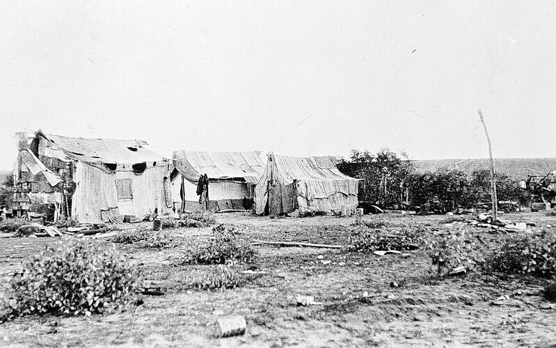 Shacks constructed from superphosphate bags. They were known as 'Florida Villas' as that was the brand name on the bags.