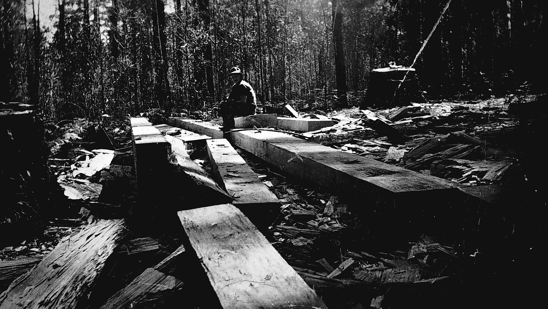 Cutting timber for wharves.