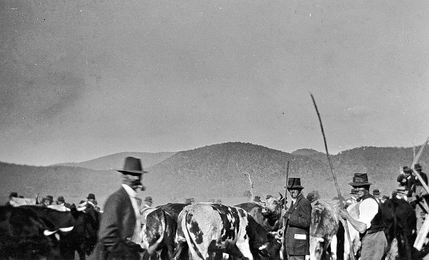 Stock auction at the clearing sale at 'Bar Widgee' homestead.