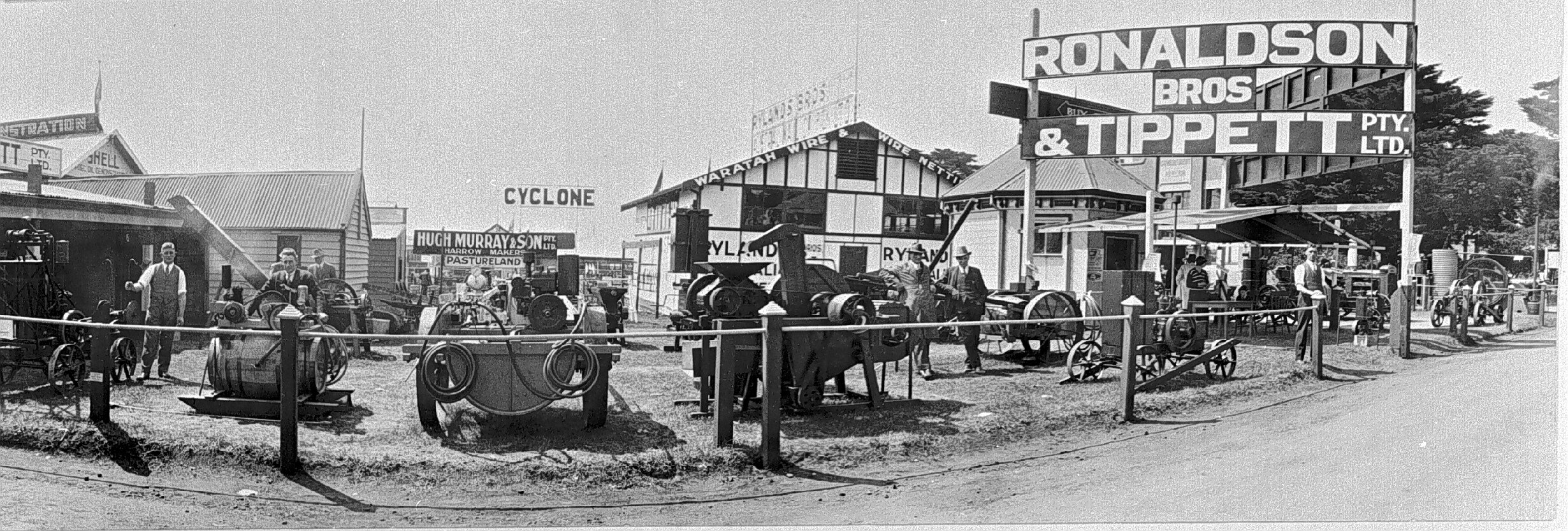 Ronaldson Brothers & Tippet display at Royal Melbourne Agricultural Show. Many pieces of machinery are on display.