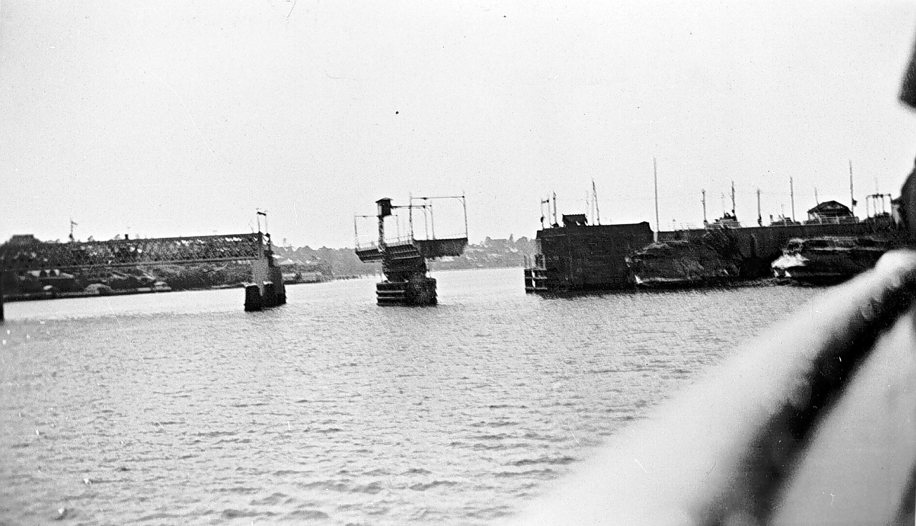 Gladesville Swing Bridge in operation on Parramatta River, Sydney Harbour.