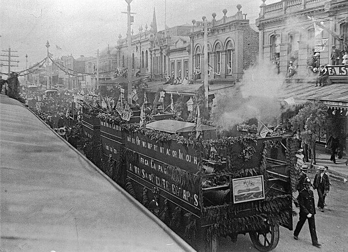 The Launceston Regatta Parade. The vehicle is an armoured train.