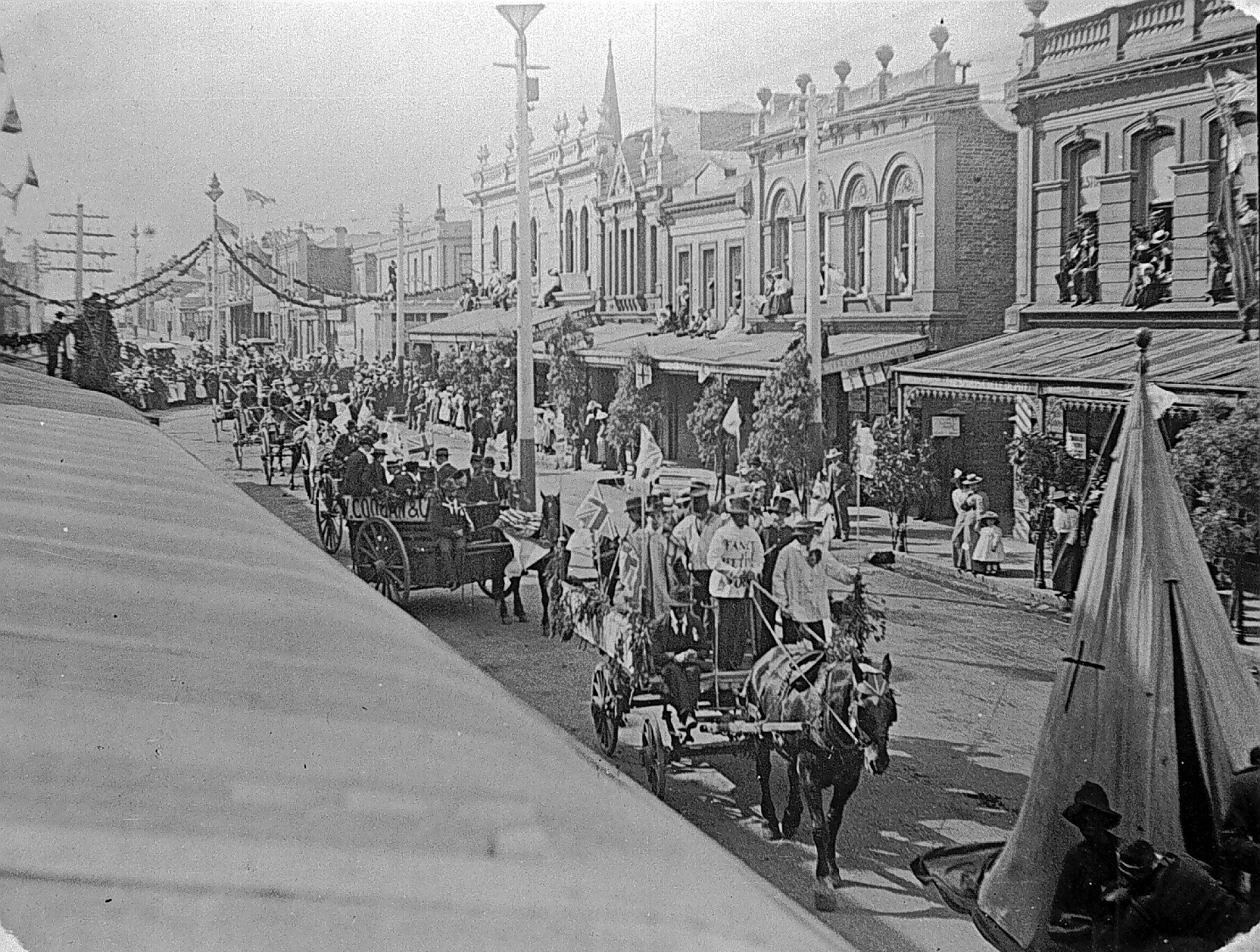 Horse-drawn vehicles in the Launceston Regatta Parade.