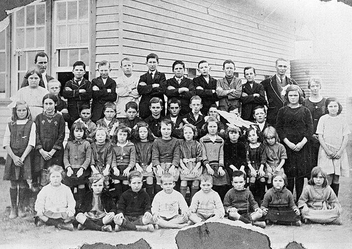 Teachers and pupils at the Manangatang State School no 3863.