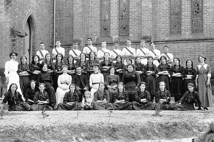 The Christ Church gymnasium class, comprising members of the Girls' Friendly Society and associates and members of the Senior Boys' Club.