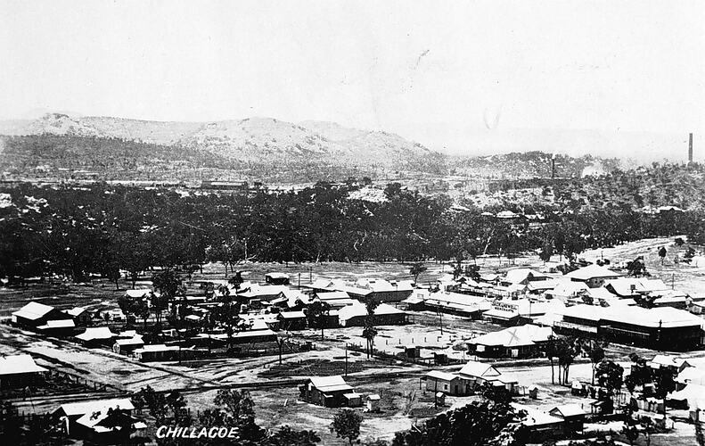 The town of Chillagoe from a nearby hillside. An 'x' marks the post office.