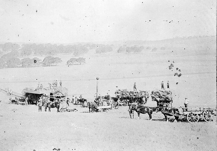 Agricultural Equipment, Agricultural Workers, Drays & Wagons, Farms, Horses, Portable Steam Engines, Workers