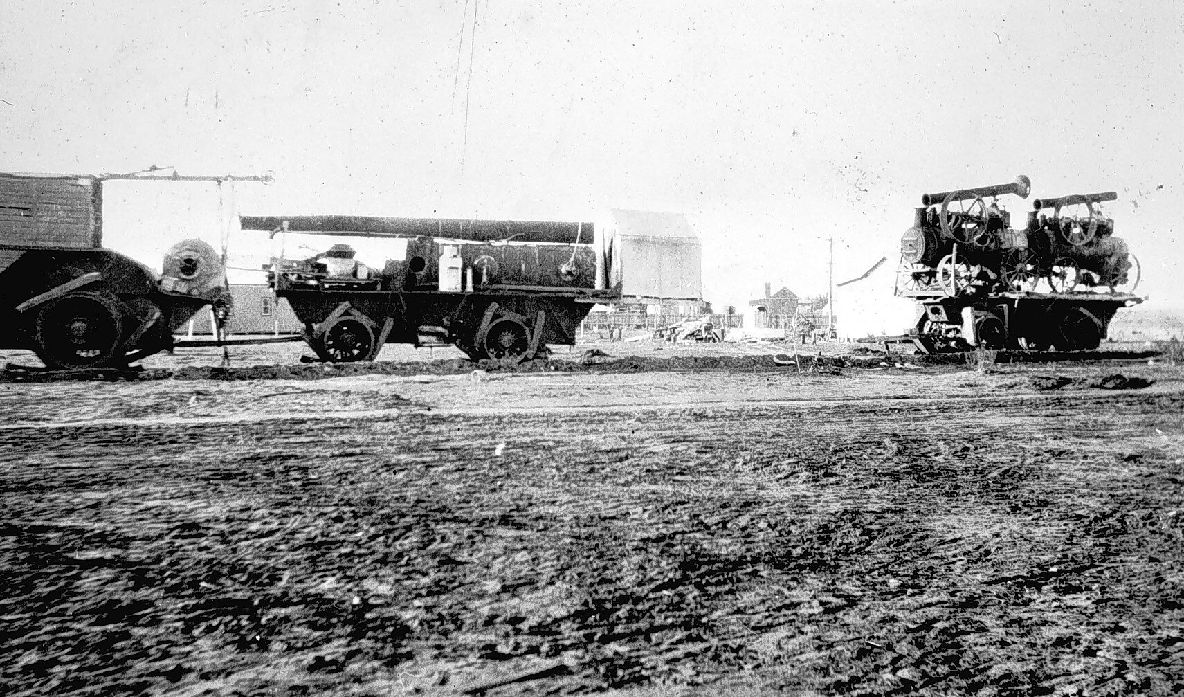 'Big Lizzie': the largest tractor built in Australia prior to the First World War, with a 60 hp 8 ton, 215 rpm single cylinder Blackstone oil engine. The tractor unit: 34 ft long x 11 ft, weighing 45 tons and capable of carrying a 10 payload, 750 gallons of cooling water.