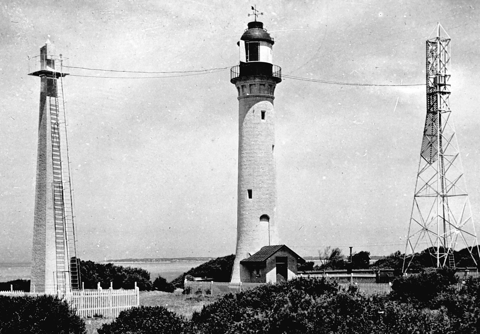 The Queenscliff lighthouse and radio beacon masts.