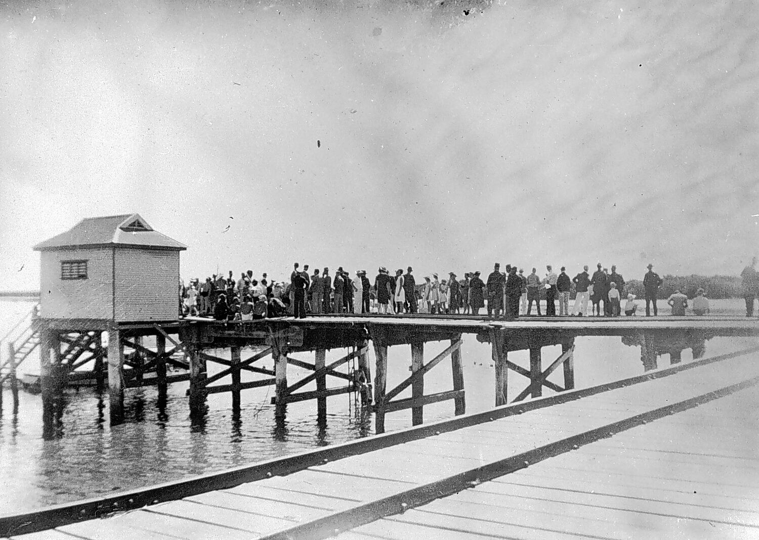 A group of people on the jetty at Port Broughton. They are watching the New Year 's Day regatta.
