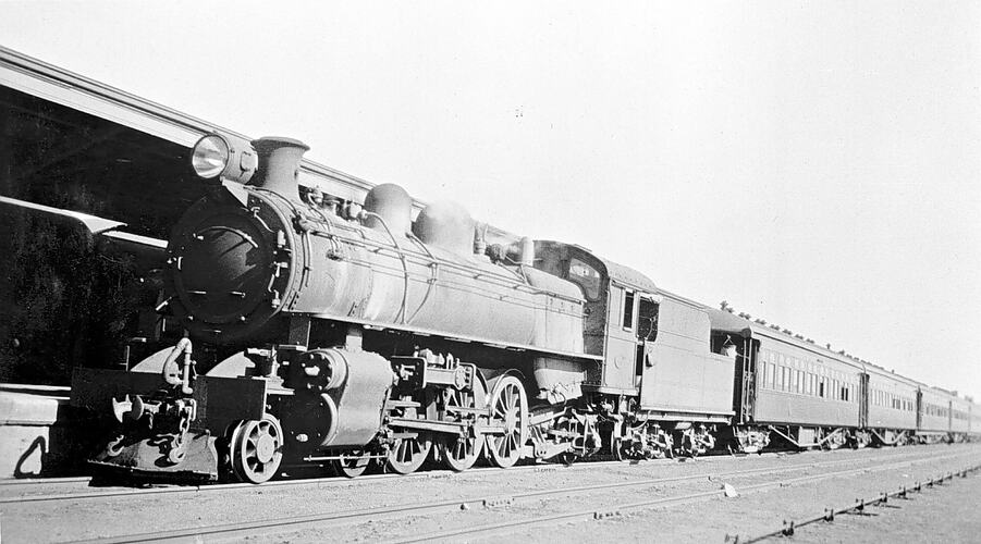 The steam engine of the Perth-Kalgoorlie express at Kalgoorlie railway station.