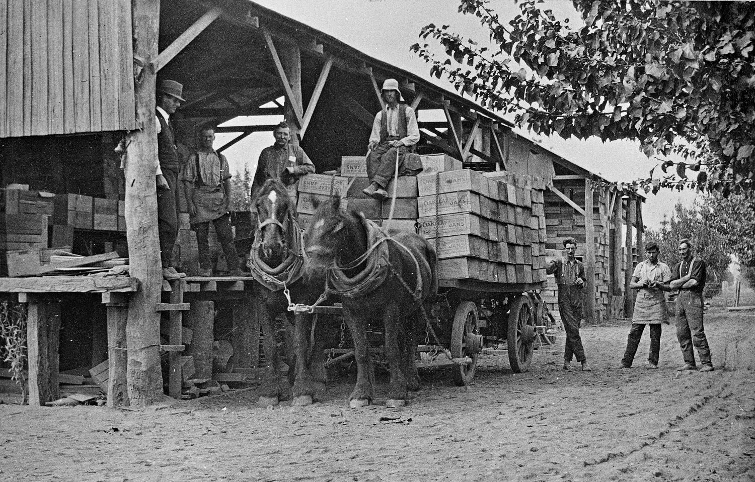 Agricultural Produce, Food, Horsedrawn Vehicles, Orchards, Workers