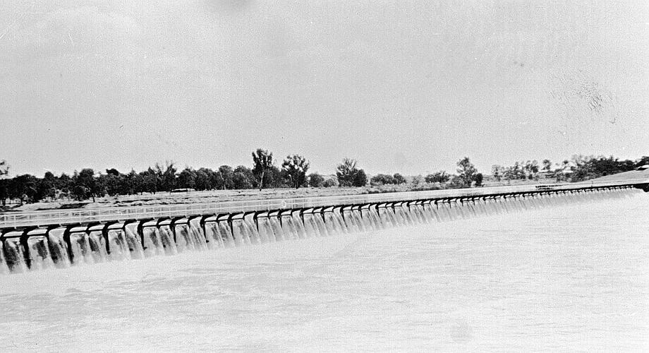A weir and bridge across the Murray River.