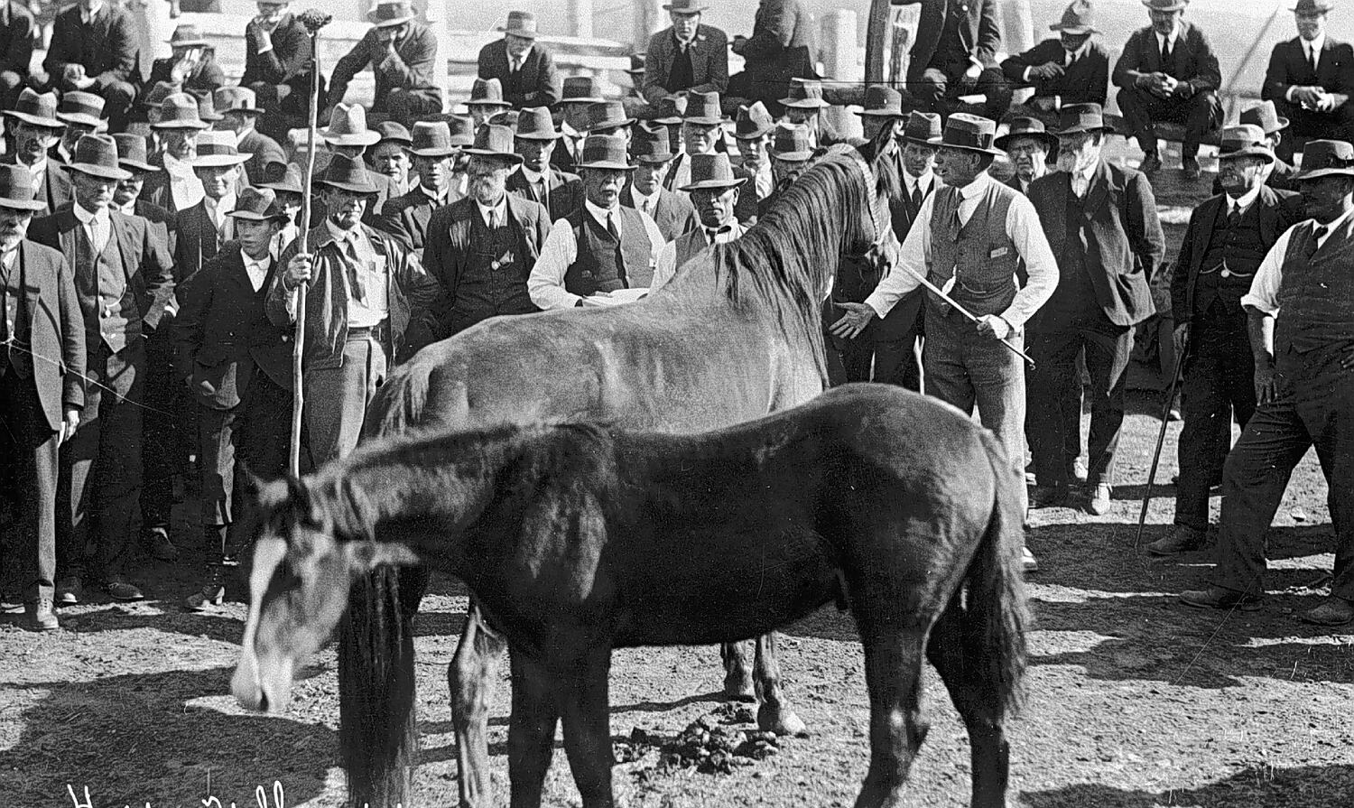 Auctioning horses at the clearing sale in stockyards at 'Happy Valley' homestead.