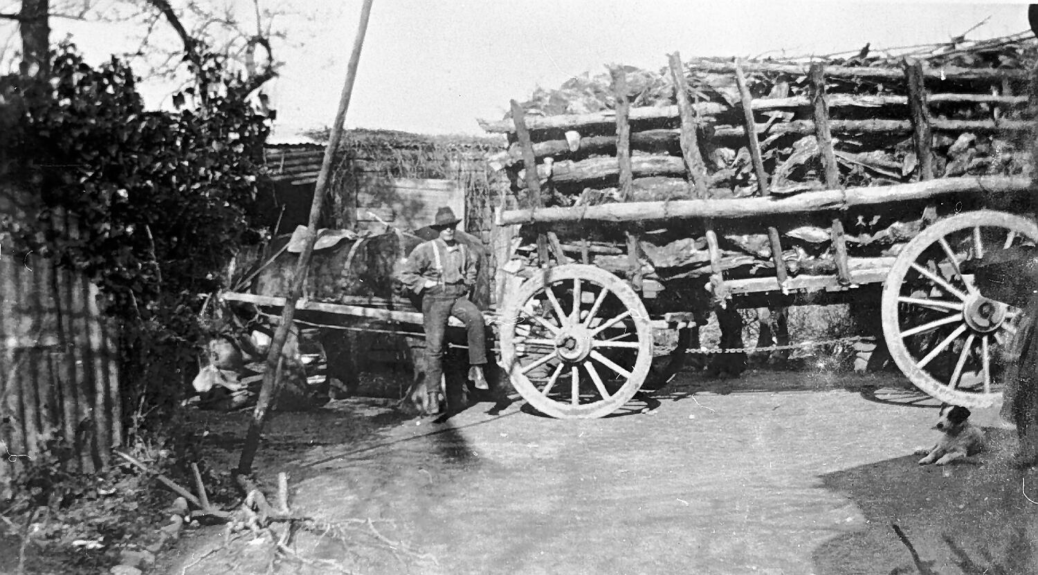 A large wagon loaded with wood.