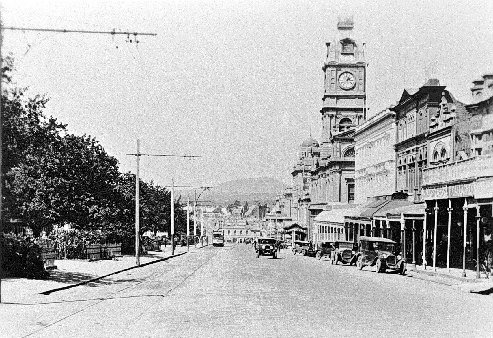 Cable Trams, Clock Towers, Motor Cars, Streetscapes, Telegraph Infrastructure, Telegraph Poles, Town Halls, Horology