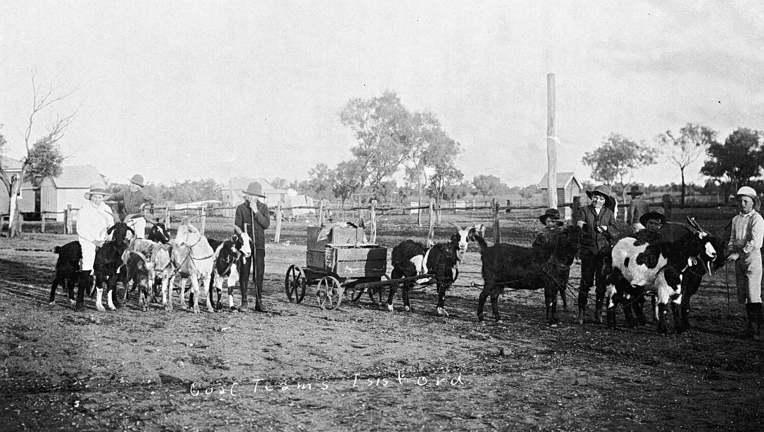 Printed in white across bottom of photograph: "Goat Teams Isisford"