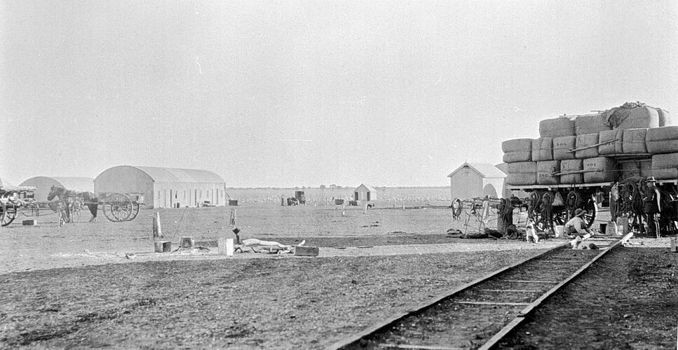 Agricultural Produce, Dogs, Domestic Animals, Drays & Wagons, Farms, Horsedrawn Vehicles, Railway Lines, Saddlery, Wool Bales
