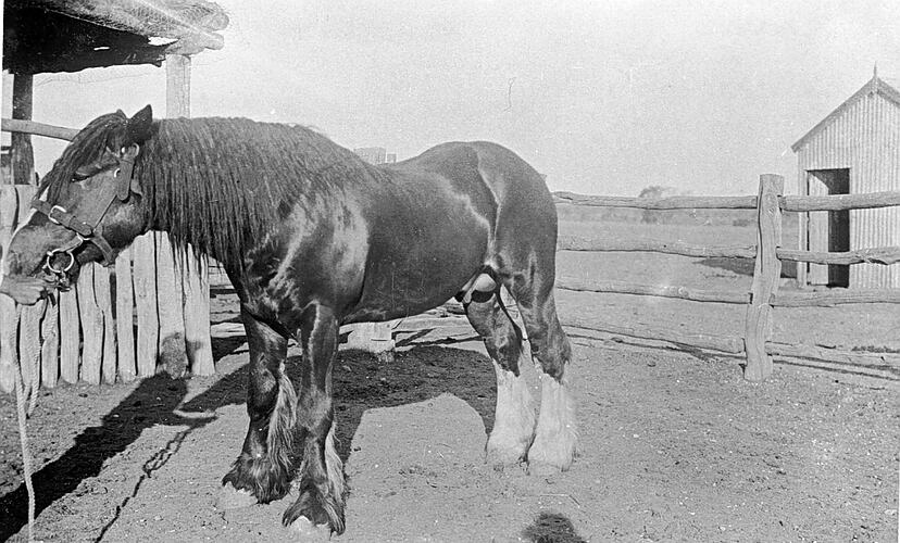 A horse in the yard on 'Portland Downs' station.
