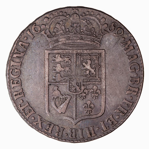 The laureate conjoined busts of William and Mary facing right; around, GVLIELMVS ET MARIA DEI GRATIA.