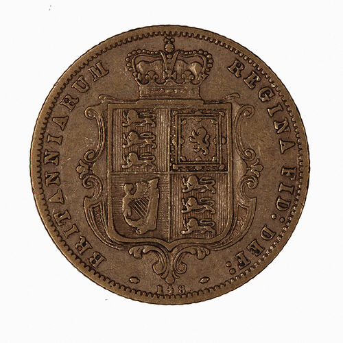 Reverse die number 148. A half-sovereign is a 10 shilling coin.