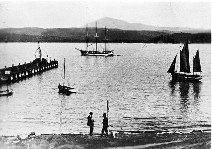 Sailing ships and a jetty in Twofold Bay.