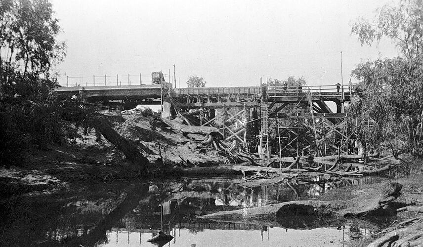Flood damage at a bridge over the Campaspe River.