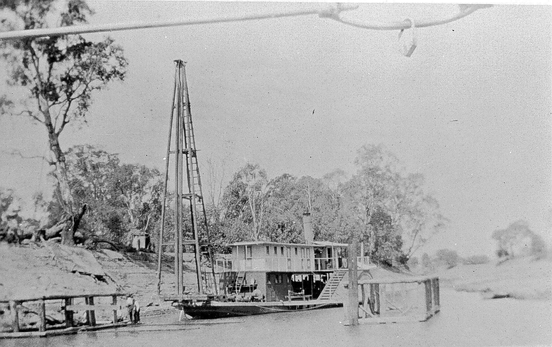 Pile driver on a paddle boat on the Murray River.