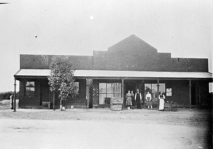 A group of people outside the Nandaly Store.