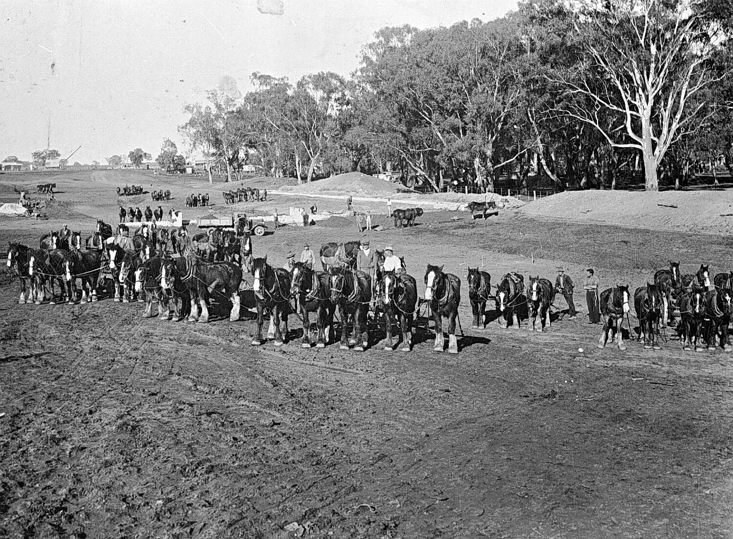 Horse teams excavating the Waranga Western Channel.